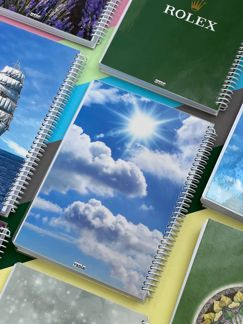 دفتر خط دار سیمی وانیا A5 طرح آسمان و خورشید