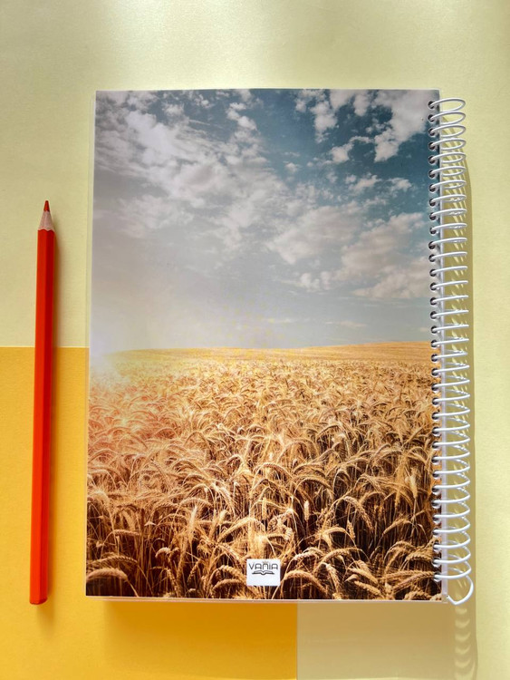 دفتر سیمی خطدار وانیا A5 طرح گندمزار و آسمان